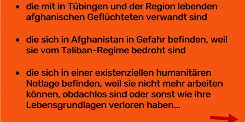 Solidarität statt Wegschauen! Mit unserer Hilfsaktion „save our families – Spendenaufruf für afghanische Familien“ haben wir zwischen Dezember 2021 und Juni 2022 fast 70 Familien in Afghanistan mit insgesamt 35.000 Euro unterstützt. Alle diese Menschen sind verwandt mit afghanischen Geflüchteten, di...