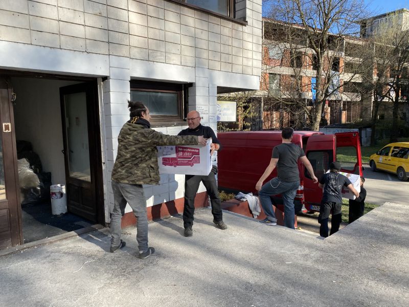 In diesem Zeitraum kümmerten wir uns vor allem um das große Warenlager mit Spendenkleidung. Wir reichten jeweils ca. 1 Tonne mit guter Kleidung an das „Community Center“ (ein im Entstehen befindliches Jugendhaus neben einem großen informellen Flüchtlingslager im Zentrum von Bihac) und an die gemeinnützige Hilfsorganisation pomozi.ba weiter, die sich um obdachlose und arme Einheimische kümmert. Außerdem beteiligten wir uns an den täglichen Essensverteilaktionen für Geflüchtete, die bei winterlichen Temperaturen in informellen Unterkünften und im freien Gelände in und um Bihac hausen müssen. Von den erhaltetenen Spendengeldern haben wir in dieser Zeit rund 6.000 Euro vor allem für Essenseinkäufe verwendet. Ein weitere Gruppe von vier Personen kam später dazu und bleibt für mehrere Wochen, um sich an den Aktivitäten des Frach-Kollektivs zu beteiligen.